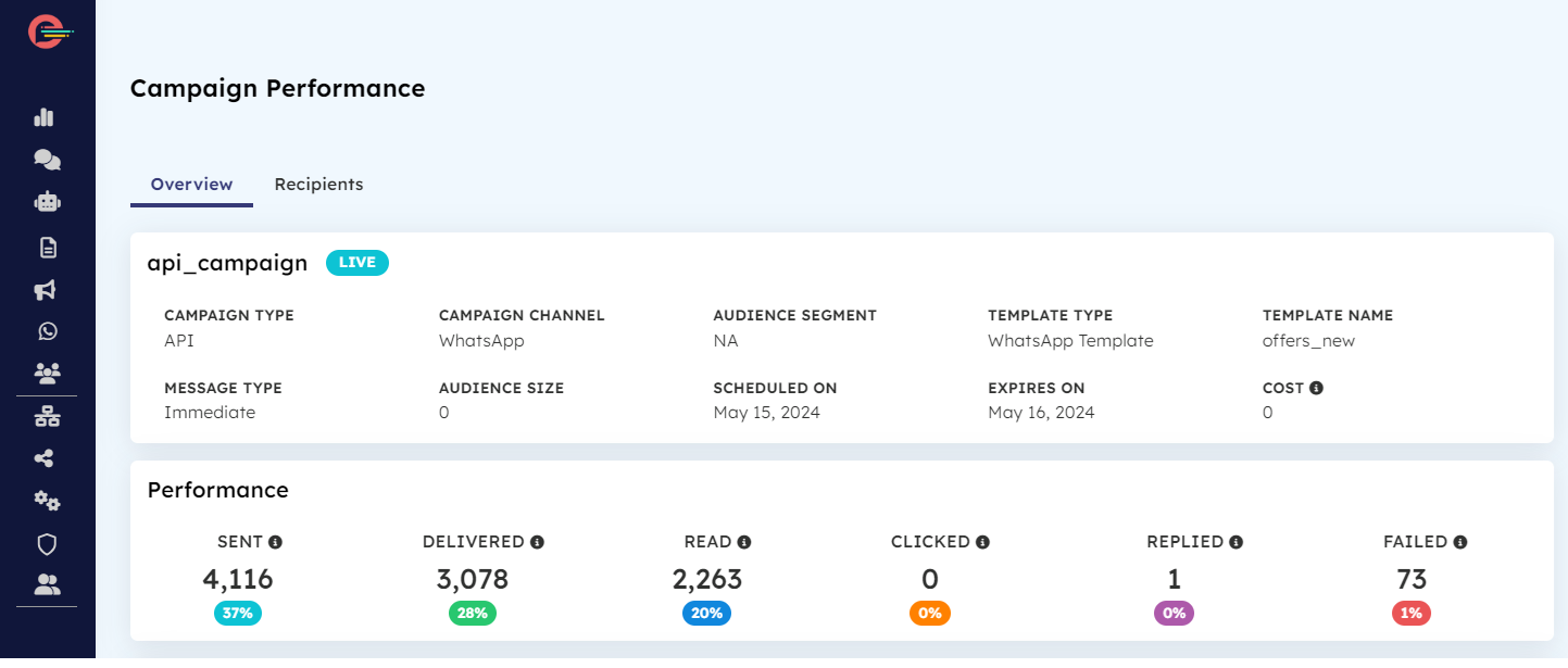API Campaigns are mainly used for transactional messaging. WhatsApp allows businesses active on WhatsApp API to send pre-approved template messages as notifications to users. In this article, we will explore how to configure the API campaign.