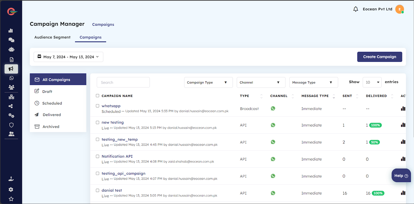 Setting up API Campaigns within the Campaign Manager on your Digital Connect account enables you to use the generated Campaign ID in API requests to initiate the delivery of transactional messages from your own business system. Additionally, you can track the performance analytics of your campaigns directly in the Digital Connect dashboard.
